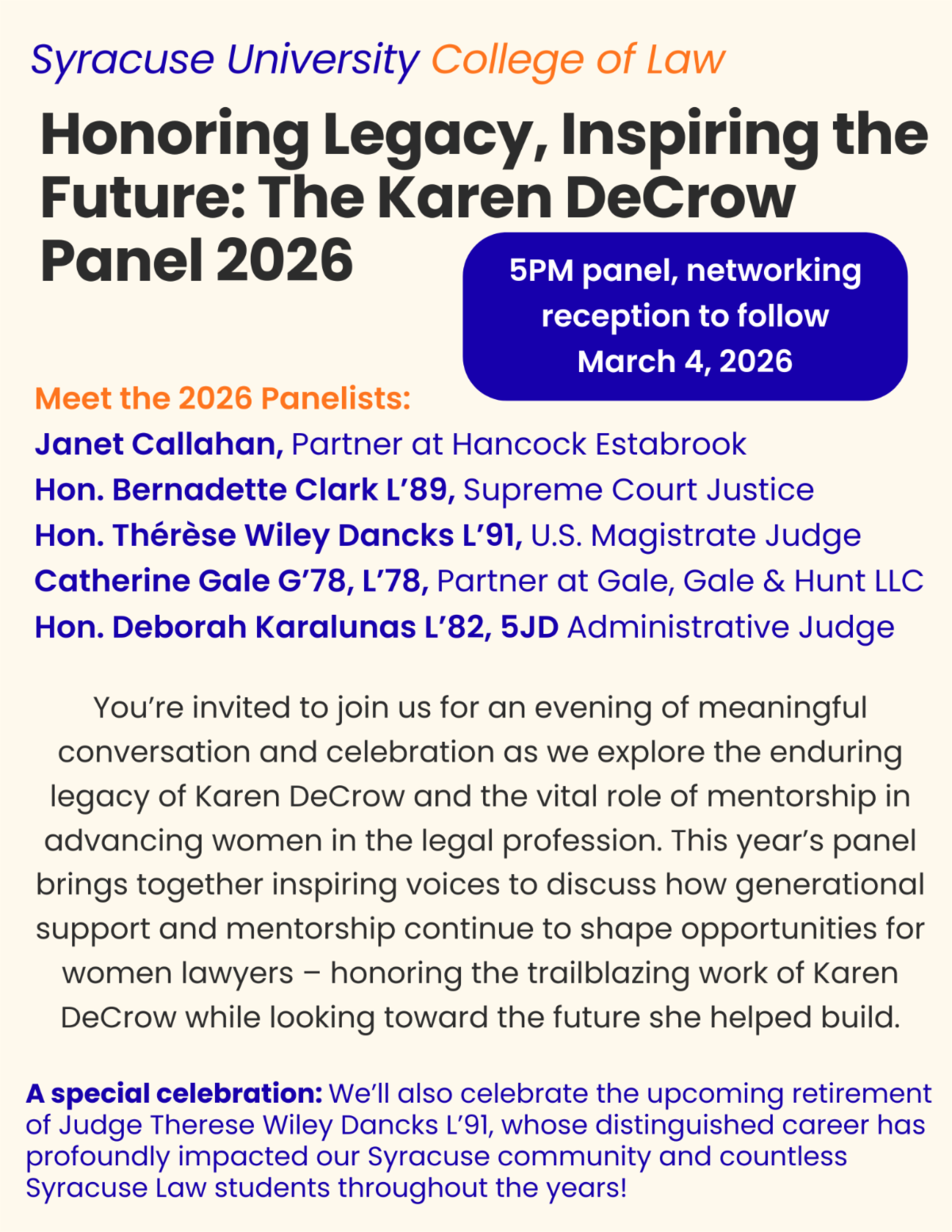 Karen DeCrow Panel Event & Judge Dancks Retirement Reception